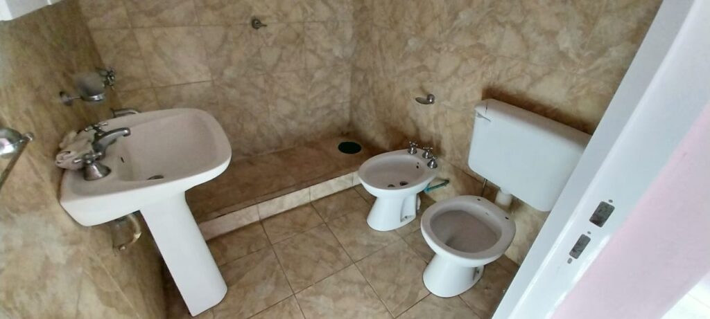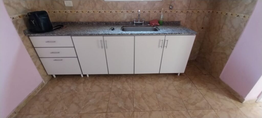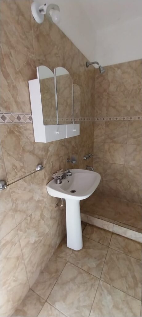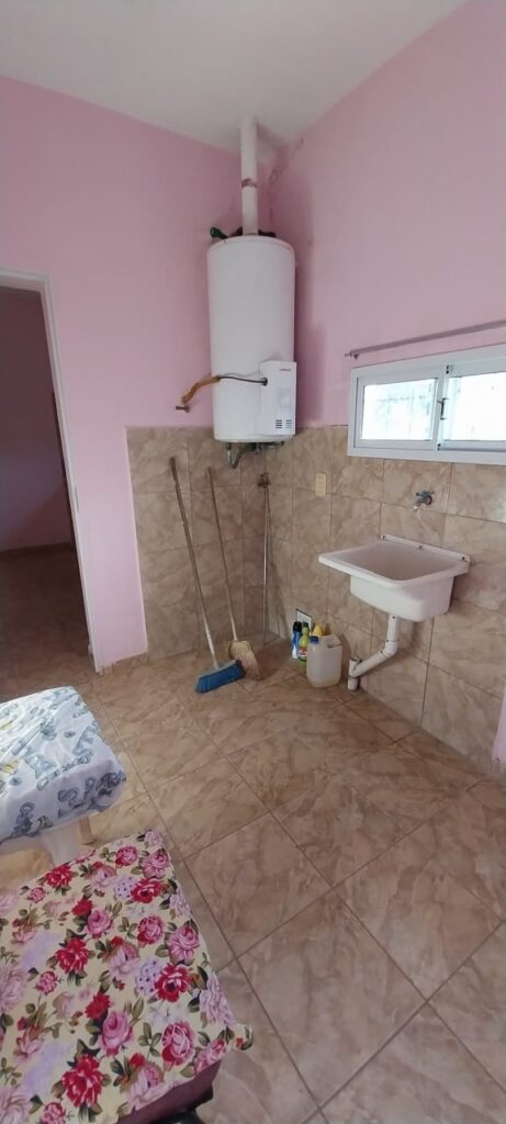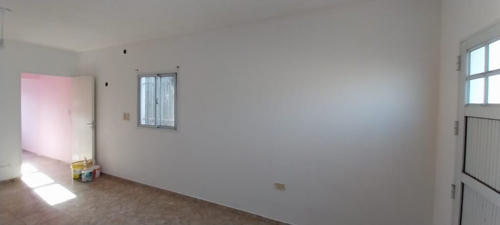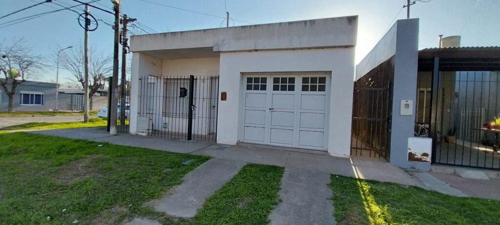 Vivienda familiar de 2 dormitorios, estar- comedor cocina integrados, 2 baños, garage, lavadero, ingreso secundario de pasillo, y patio.