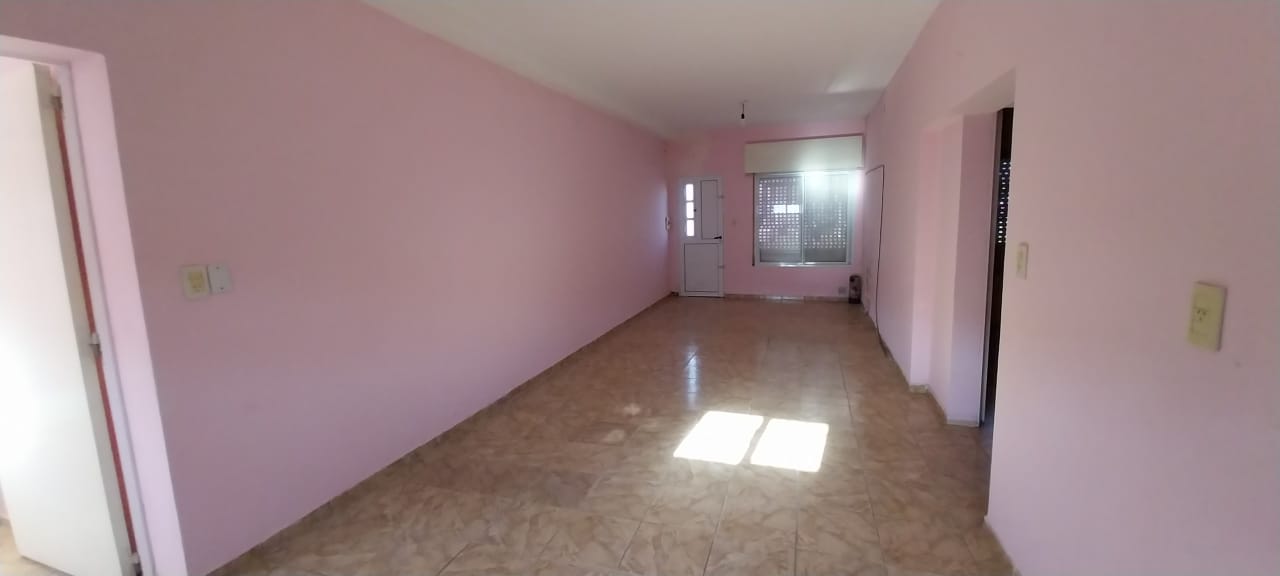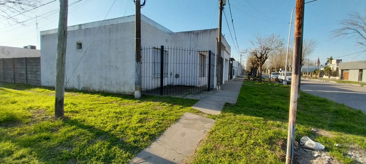 Vivienda familiar de 2 dormitorios, estar- comedor cocina integrados, 2 baños, garage, lavadero, ingreso secundario de pasillo, y patio.